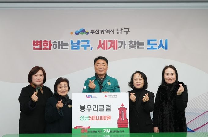 [경남도민뉴스=신석주 기자] 봉우리클럽(회장 최영실)은 지난 12월 9일, 부산 남구에 '희망 2026 나눔 캠페인'의 일환으로 성금 50만 원을 기부했다고 밝혔다.