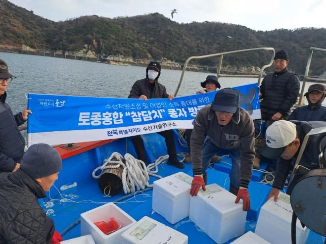 [경남도민뉴스=최인태 기자] 군산시가 전북 수산기술연구소에서 최초로 종자생산에 성공한 참담치 치패 10만 미를 10일 어청도 해역 마을 어장에 방류했다.