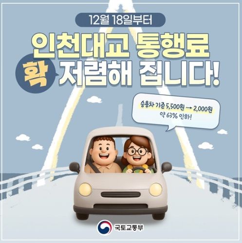 [경남도민뉴스=백형찬 기자] 12월 18일부터 인천대교 통행료 확 저렴해 집니다!