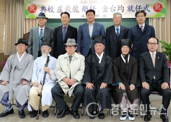 (함양/최병일) = 함양향교는 30일 유림회관 3층에서 지역 유림 등 100여 명이 참석한 가운데 함양향교 전교 이·취임식을 개최했다. 이날 이·취임식에서는 노재용 전교가 이임하고 신임 김태균 전교가 취임했다.