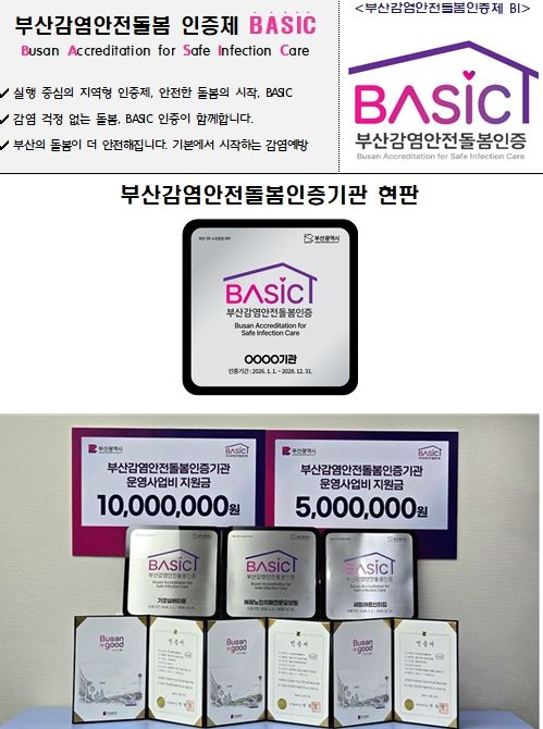 조규율 시 시민건강국장은 “부산감염안전돌봄인증제는 돌봄 현장의 감염관리 수준을 한 단계 끌어올리기 위한 전국 최초의 시도”라며, “우리시는 이번 인증을 통해 인증기관의 책임과 자긍심을 높이고, 감염병으로부터 안전한 돌봄 환경이 지역사회 전반에 확산하길 기대하며, 앞으로도 시민이 신뢰할 수 있는 건강한 감염안전돌봄 도시 부산을 만들어 가겠다”라고 전했다.