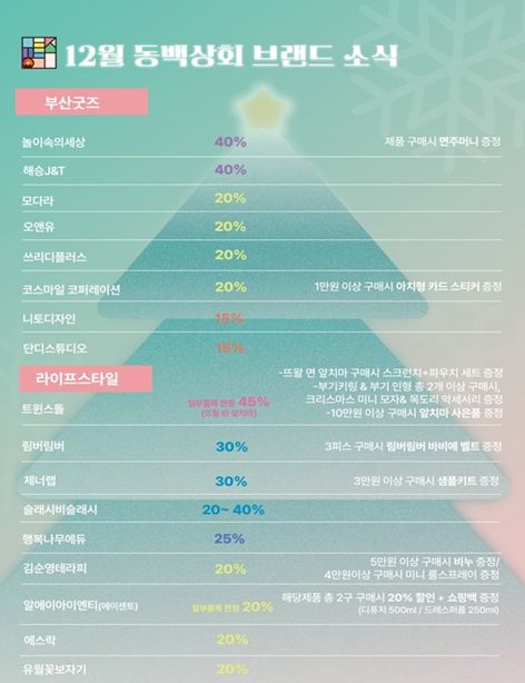 [경남도민뉴스=신석주 기자] 부산시와 부산경제진흥원은 부산 우수 제품 쇼핑 숍 '동백상회'에서 12월 31일까지 송년 감사 특별 할인 행사를 개최한다고 밝혔다.
