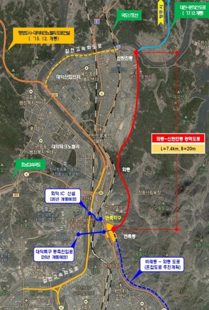 [경남도민뉴스=도문호 기자] 대전시는 대덕구 연축동~신탄진 용정초교를 잇는 ‘와동~신탄진동 도로개설사업’이 22일 기획재정부 재정사업평가위원회 심의를 거쳐 예비타당성조사 대상사업으로 선정됐다.