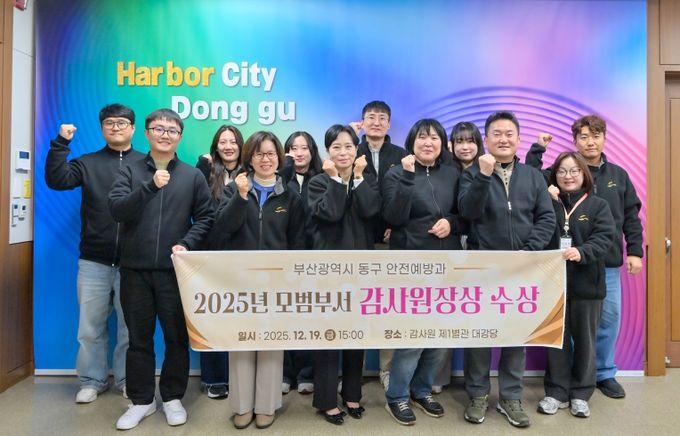 [경남도민뉴스=신석주 기자] 부산 동구는 안전예방과가 감사원으로부터 모범부서로 선정돼 지난 19일 감사원에서 열린 2025년도 모범사례 포상행사에서 감사원장 표창을 받았다고 밝혔다.