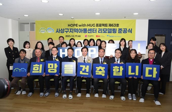 [경남도민뉴스=김채연 기자] 부산 사상구는 지난 17일, 부산광역시·부산국제건축제조직위원회·주택도시보증공사(HUG)가 공동 주관하는 2025년 ‘HOPE with HUG’ 프로젝트에 선정된 사상구지역아동센터의 노후 시설 리모델링 공사를 완료하고 준공식을 개최했다고 밝혔다.