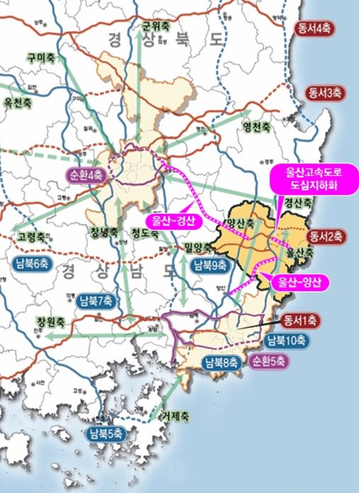 제3차 고속도로 건설계획 대상사업은 ▲울산~경산(L=50km, 3조 4,000억 원) ▲울산고속도로 도심지하화(L=11.5km, 1조 2,000억 원) ▲울산~양산(L=34.6km, 1조 4,990억 원) 구간에 대한 국가계획 반영을 위해 중앙정부와 협의를 진행 중이다.