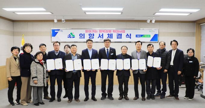 [경남도민뉴스=장광동 기자] 함양군은 30일, 군청 소회의실에서 ‘찾아가는 행복점빵’ 확산을 위해 농협중앙회 함양군지부와 5개 지역농협이 참여하는 사업 추진 의향서 체결식을 가졌다.