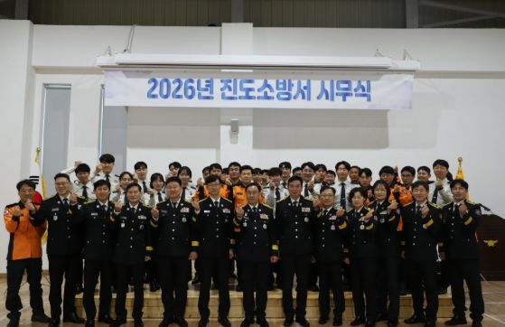 [경남도민뉴스=최인태 기자] 진도소방서는 1월 2일 소방공무원 50여 명이 참석한 가운데 2026년 병오년 새해를 맞아 시무식을 개최했다.