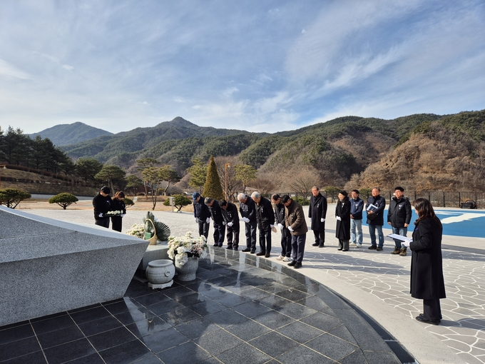 [경남도민뉴스=백형찬 기자] (사)거창사건희생자유족회는 병오년 새해를 맞아 지난 5일, 거창사건추모공원 위령탑에서 이성열 유족회장과 임원들, 사업소 직원 등 20여 명이 참석해 새해맞이 위령탑 참배를 진행했다.