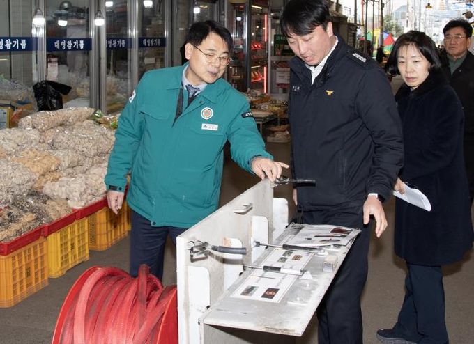 이어 부곡시장을 찾아 자동화재탐지기 및 유도등 교체, 소방 펌프실 보강 등 소방 분야 시설 개선 현황을 점검하고, 겨울철 화재 사고 예방을 위한 안전관리 체계를 확인했다.