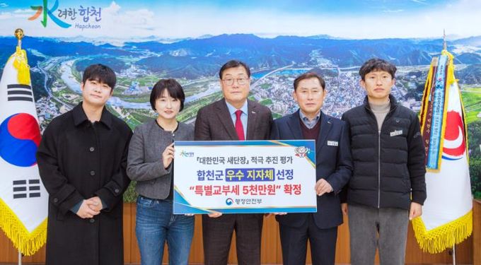 [경남도민뉴스=김춘호 기자] 합천군은 행정안전부가 주관한 ‘대한민국 새단장’ 평가에서 우수 지자체로 선정돼 특별교부세 5천만 원을 확보했다고 6일 밝혔다.