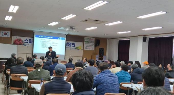 [경남도민뉴스=나희준 기자] 밀양시는 지난 7일 산내면 얼음골사과발전협의회 대강당에서 사과 재배 농업인을 대상으로 ‘미래형 사과과원 조성을 위한 설명회’를 개최했다.