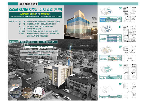 특히, 도내에 도심지에 흉물로 방치되어 있던 진주시 (구)영남백화점, 창녕군 (구)119소방대 건물, 의령군 (구)미림탕, 3곳의 위험건축물을 도시재생에 활용하여 도민이 필요한 복지시설, 청년센터 등 도민 체감의 편의시설로 탈바꿈시킨 점이 돋보인다.