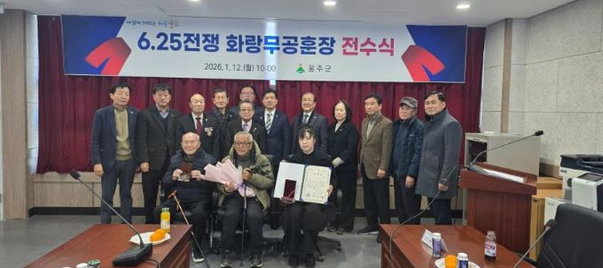 [경남도민뉴스=최재경 기자] 울산 울주군이 12일 울주군 보훈회관에서 6.25참전유공자 고(故) 이영숙 병장의 동생 이한웅씨에게 화랑무공훈장을 전수했다.