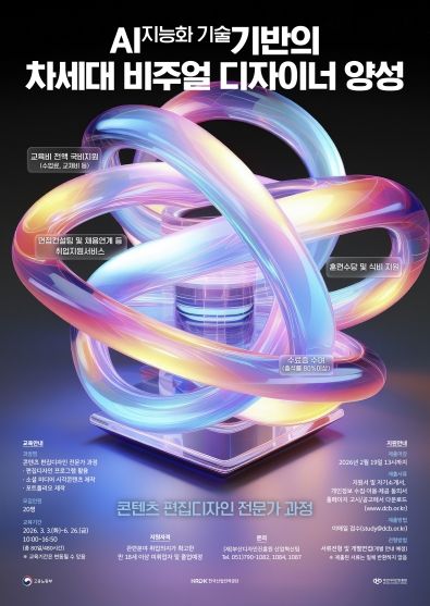 이번 과정은 고용노동부와 한국산업인력공단이 지원하는 지역·산업 맞춤형 인력양성사업의 일환으로 추진되며, 디지털 기술 기반의 차세대 비주얼 디자인 전문가 양성을 목표로 약 4개월간 운영된다. 교육은 오는 3월 3일부터 시작될 예정이다.