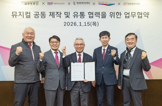 [경남도민뉴스=나희준 기자] 밀양문화관광재단은 지난 15일 세종문화회관 귀빈실에서 세종문화회관과 ‘뮤지컬 공동 제작 및 유통 협력을 위한 업무협약(MOU)’을 체결했다.