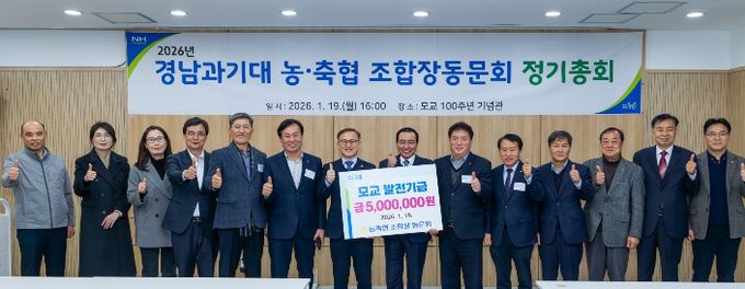 동문회 조규석 회장은 “대한민국 농업 교육의 중심인 경상국립대학교의 가르침이 현장 활동에 큰 밑거름이 됐다.”라며 “동문 조합장들의 정성을 모은 이 기탁금이 후배들이 더 나은 환경에서 공부하고 전문 농업인으로 성장하는 데 보탬이 되길 바란다.”라고 말했다.