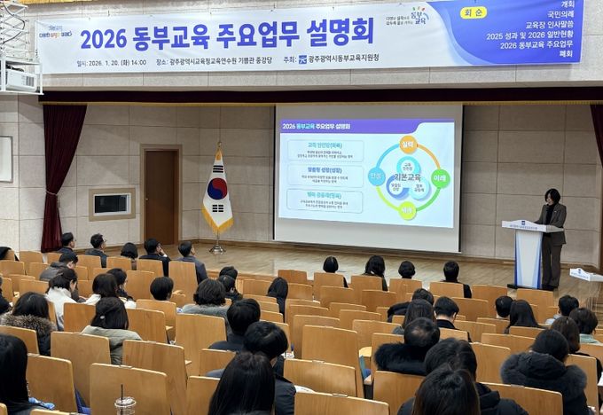 [경남도민뉴스=최현인 기자] 광주동부교육지원청은 20일 광주시교육청교육연수원 중강당에서 ‘2026년 동부교육 설명회’를 개최했다.
