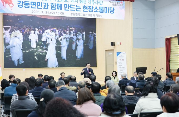 이날 오전에는 북경주 행정복지센터에서, 오후에는 강동면 복지회관에서 각각 현장소통한마당이 열렸으며, 주민과의 질의응답을 중심으로 지역 현안과 시정 방향을 놓고 의견을 나눴다.