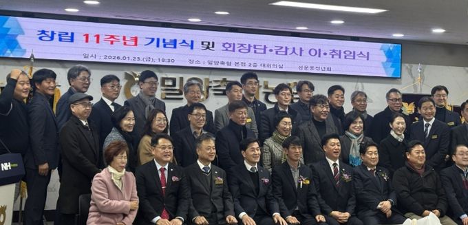 [경남도민뉴스=나희준 기자] 밀양시 삼문동 청년회(회장 박진희)는 지난 23일 밀양축협 대회의실에서 창립 11주년 기념식 및 회장단 이·취임식을 개최했다.