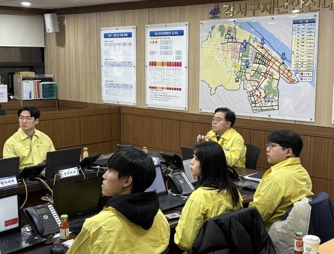 [경남도민뉴스=류종길 기자] 진교훈 서울 강서구청장이 1일 밤부터 2일 새벽 사이에 서울 전역에 많은 눈이 내릴 것이 예보됨에 따라 구 제설대책본부를 찾아 제설대응 체계를 점검했다.