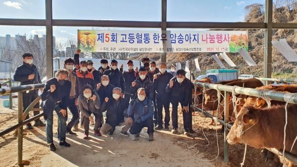 [경남도민뉴스] 함양군은 17일 오전 함양가축시장에서 소규모 한우 사육농가 우량 한우 개량을 위한 ‘고등혈통 우량 한우 나눔 행사’를 실시하였다.