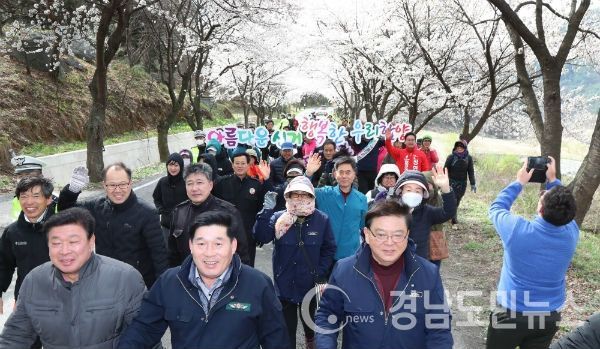 (함양/최병일) = 경남 함양군 50리 벚꽃길에서 열린 ‘제16회 백운산 벚꽃축제’가 만개한 분홍빛 벚꽃과 하얀 눈이 자아내는 진풍경이 관람객들의 발길을 붙잡았다.