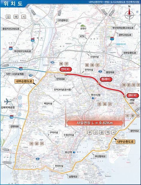 국내 최초 전 차량 이용이 가능한 대심도 터널인 '만덕~센텀 도시고속화도로'를 이용하면 북구 만덕사거리, 동래구 미남·내성·동래·안락교차로, 해운대구 원동나들목(IC) 사거리를 통과하지 않고 북구 만덕동에서 해운대구 재송동까지 바로 이동할 수 있다.