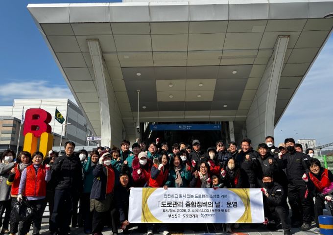[경남도민뉴스=신석주 기자] 부산시 부산진구는 2월 4일 안전하고 질서 있는 도로환경 조성을 위해‘도로관리 종합정비의 날’을 운영했다. 이번 정비 활동은 부전역 맞이길 조성사업 준공 및 설 명절을 앞두고 구민과 시장 이용객이 안전하고 쾌적하게 도로를 이용할 수 있도록 하기 위해 마련됐다.