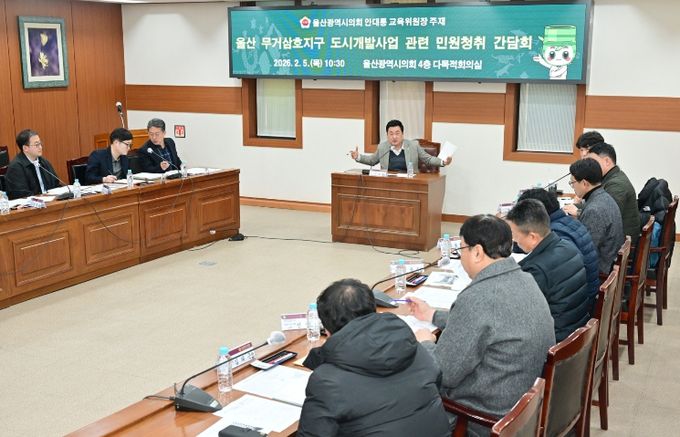 [경남도민뉴스=최재경 기자] 울산광역시의회 교육위원회 안대룡 위원장(삼호동, 무거동)은 5일 시의회 4층 다목적 회의실에서 무거·삼호지구 공사 현장 인근 문수비스타동원 입주민들과 함께 입주 완료 이후 발생하고 있는 생활환경 피해 민원 청취 간담회를 개최 했다.