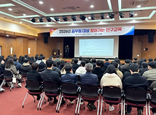 [경남도민뉴스=권중환 기자] 진주시는 6일 시청 시민홀에서 인구문제에 대한 지방정부와 공무원의 역할을 고민하고, 실효성 있는 해결책을 모색하기 위해 2026년 새해 첫 ‘찾아가는 인구교육’을 실시했다고 밝혔다.