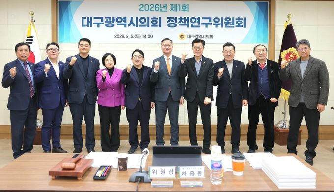 [경남도민뉴스=백상현 기자] 대구광역시의회는 2월 5일 오후 2시, 시의회 3층 회의실에서 ‘2026년 제1회 대구광역시의회 정책연구위원회’를 개최해, 2025년에 완료된 의원 정책연구의 추진 과정과 내용에 대한 적절성 등을 중점 점검하고, 2026년 상반기의 연구과제로 ‘대구·경북 의회통합 방안 연구’를 심의·의결했다.