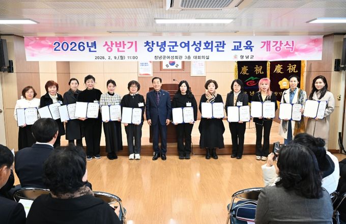 [경남도민뉴스=김병현 기자] 창녕군은 9일, 창녕군여성회관 대회의실에서 군민의 자아실현과 취업능력 향상을 위한『2026년 상반기 창녕군여성회관 교육 개강식』을 개최했다.