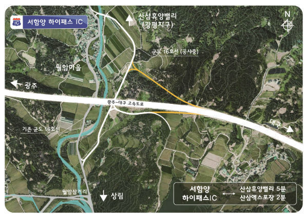 신설되는 서함양 하이패스 IC는 광주∼대구 고속도로 91.8㎞ 지점인 병곡면 월암삼거리 부근(광평천교 앞)으로 대구방면 진·출입 시설 1개소씩 설치되며, 현재 공사 중인 군도 16호선과 연결된다.