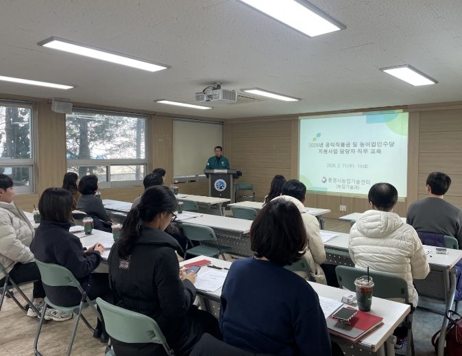 [경남도민뉴스=김부경 기자] 통영시는 지난 11일 농업기술센터 회의실에서 읍면동 업무 담당자를 대상으로‘2026년 기본형 공익직불금 및 농어업인수당 지원사업’직무 교육을 실시했다.