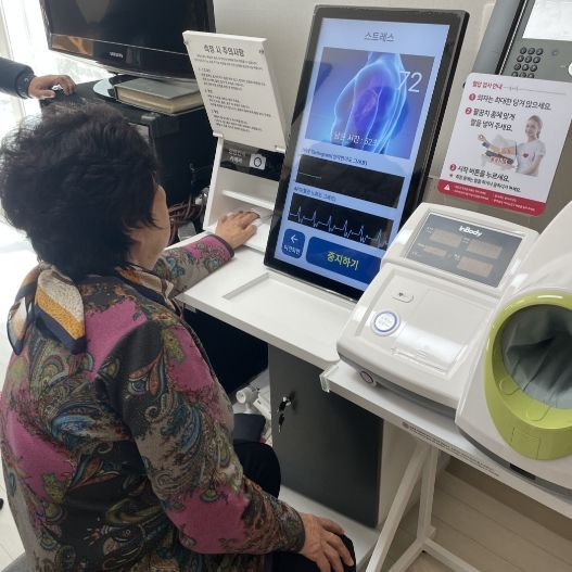 스마트경로당 헬스케어는 ICT 디지털 기술을 활용해 경로당과 보건소를 비대면으로 연결하고, 어르신들의 건강 수준 향상과 삶의 질 개선을 목표로 한다. 경로당에 설치된 기기를 통해 어르신들이 혈압·혈당·자율신경계(스트레스)·체온·체중 등 건강지표를 스스로 측정·확인할 수 있다.
