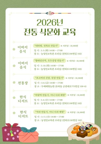 [경남도민뉴스=최미정 기자] 김해시는 3월 3일부터 3월 11일까지 ‘2026년 전통 식문화 교육’을 운영한다고 밝혔다.