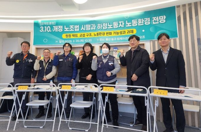 [경남도민뉴스=최재경 기자] 울산 동구 비정규직 노동자 지원센터는 2월 26일 오전 10시 30분, 워케이션센터(해수욕장길 10길 38)에서 지역 노동자 30여명과 함께 ‘3. 10. 개정 노조법 시행과 조선업 하청 노동자 노동환경 전망’을 주제로 정책토론회를 개최했다.