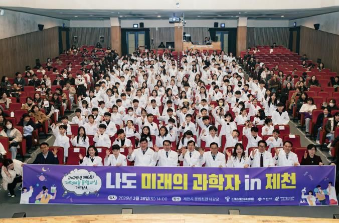[경남도민뉴스=박만수 기자] 제천시인재육성재단은 지난 28일 제천시 문화회관에서 '2026년 제6회 과학·예술 융합교실 개강식 ‘나도 미래의 과학자 in 제천’'을 성황리에 개최했다.