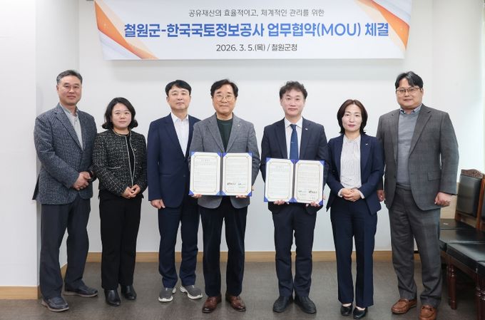 [경남도민뉴스=표재민 기자] 철원군은 3월 5일 철원군청에서 한국국토정보공사(LX) 강원지역본부와 ‘공유재산 정밀 실태조사 업무협약(MOU)’을 체결했다.