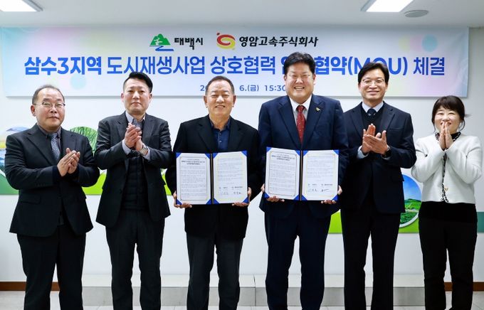 [경남도민뉴스=류종길 기자] 태백시는 3월 6일 오후 3시 30분 시청 소회의실에서 영암고속 주식회사와 ‘삼수3지역 도시재생사업 추진을 위한 업무협약’을 체결했다고 밝혔다.