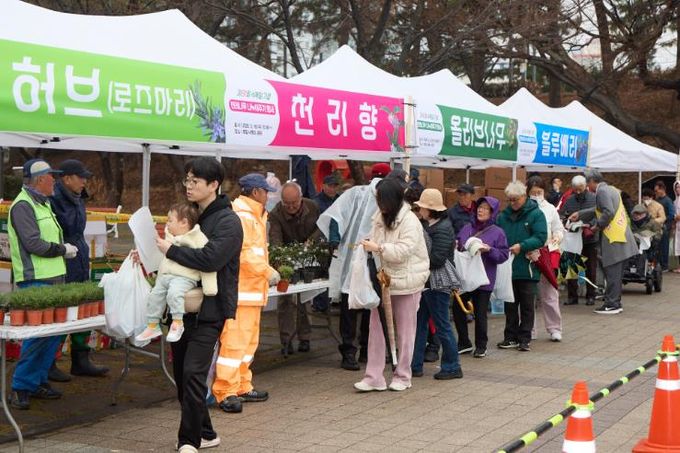 이번 행사에서는 올리브나무, 블루베리, 천리향, 로즈마리, 라벤더, 베고니아 등 4,500여 본을 1인당 3본씩 무료 배부했다.