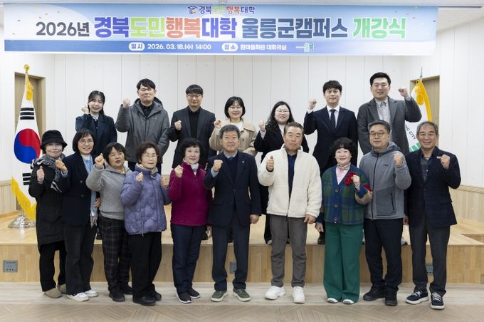 [경남도민뉴스=장강동 기자] 울릉군은 18일 오후 2시 울릉군청 4층 회의실에서 남한권 울릉군수(학장)를 비롯해 수강생과 관계자 등 20여 명이 참석한 가운데 ‘2026년 경북도민행복대학 울릉군캠퍼스 개강식’을 개최했다.