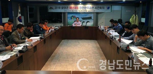 (함양/최병일) = 함양군은 지난 19일 13개 협업부서와 관내 소방서, 경찰서 등 유관기관·단체 관계자 등 30명이 참여한 가운데 ‘2018년 재난대응 안전한국훈련’ 사전기획 회의를 가졌다고 20일 밝혔다.