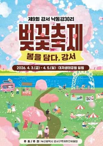 [경남도민뉴스=신석주 기자] 부산 강서구는 오는 4월 3일부터 5일까지 3일간 대저생태공원 일원에서 ‘제9회 강서 낙동강30리 벚꽃축제’를 개최한다.
