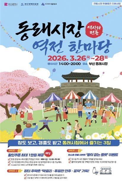 [경남도민뉴스=신석주 기자] 부산시는 26일부터 3월 28일까지 3일간 동래시장과 충무동 새벽시장에서 소비 진작을 위한 '전통시장 판매촉진 지원행사'를 개최한다고 밝혔다.