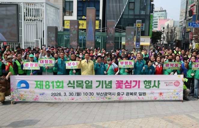 [경남도민뉴스=김채연 기자] 부산 중구는 지난 3월 30일(월) 광복로 입구 일원에서 ‘2026년 제81회 식목일 기념 꽃심기 행사’를 성황리에 개최했다.