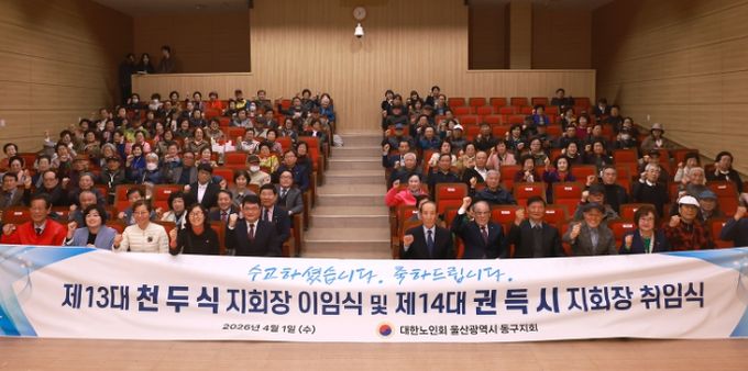 [경남도민뉴스=최재경 기자] 대한노인회 울산 동구지회(지회장 권득시)는 4월 1일 오전 10시 동구청 5층 중강당에서 경로당 회장 및 총무, 지회 임원 등 160여 명이 참석한 가운데 노인지회장 이취임식 및 2026년도 노인 지도자 업무 연찬회를 가졌다.