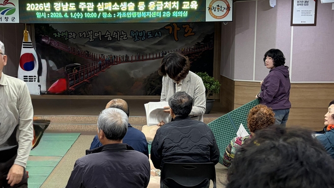 [경남도민뉴스=백형찬 기자] 거창군 가조면은 지난 1일 가조면 행정복지센터에서 지역 내 안전망 확보를 위한 ‘2026년 경상남도 주관 심폐소생술(CPR) 및 응급처치 교육’을 실시했다.