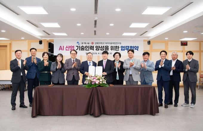 [경남도민뉴스=오창경 기자] 구미시는 2일 시청 대회의실에서 경북대학교 데이터융복합연구원(원장 정태옥)과‘AI 산업 기술인력 양성’을 위한 업무협약(MOU)을 체결했다. 이번 협약은 산업 현장에서 필요한 맞춤형 AI 전문인력을 양성하여 기업들의 AI전환을 지원하기 위해 마련됐다.